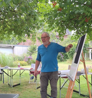 ein Läppchen für die Hände und ggf. eine Mappe zum Rückransport fürs Bild