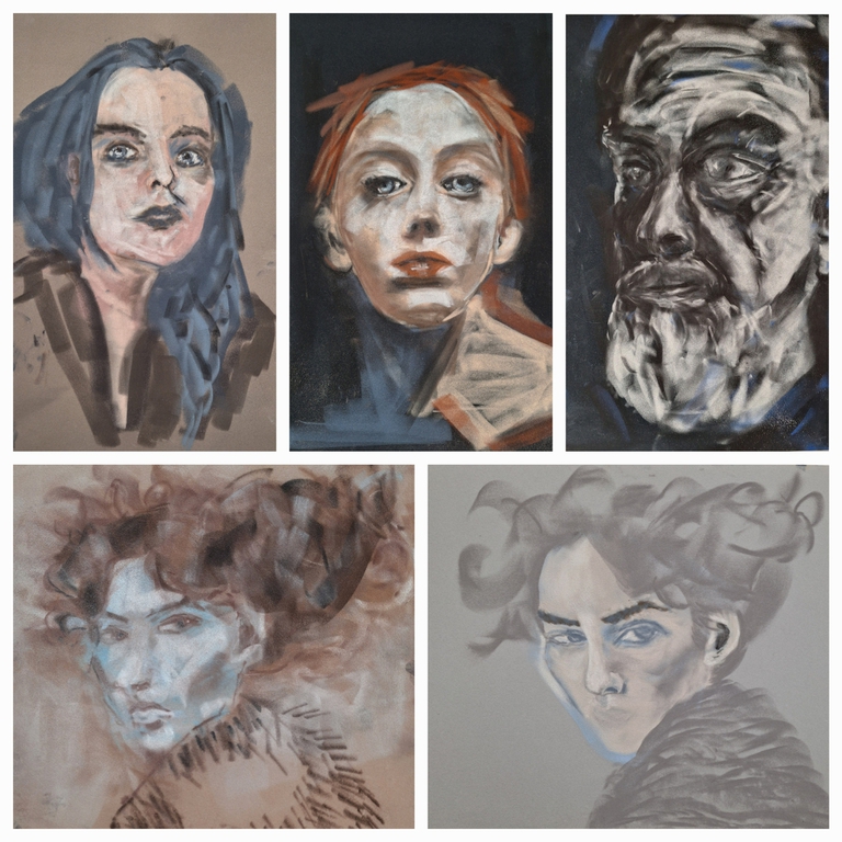 wir malen mit weichen Pastellen (Schmincke und Sennelier) auf Velourpapier