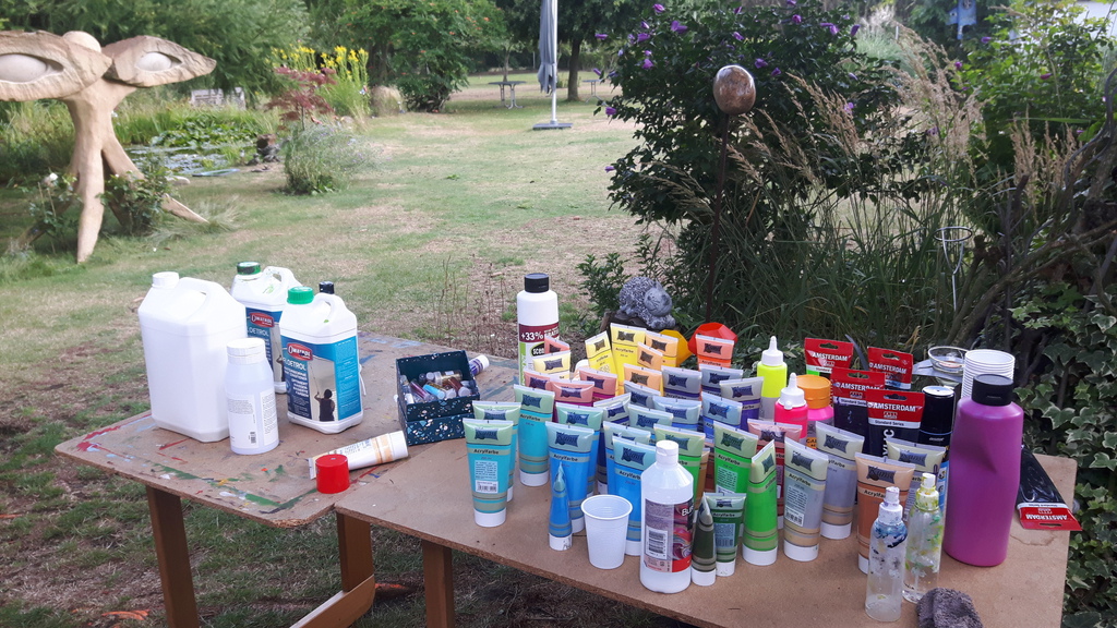 Achtung: Es ist nicht möglich, die Bilder zum Trocknen im Atelier zu lassen. Wir können die Arbeiten ein paar Tage zum Trocknen in die Garage legen.